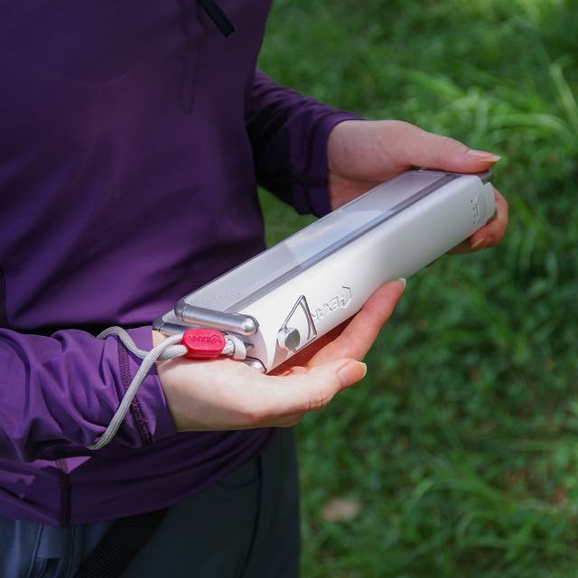 ボディはアルミ合金、導光パネルはポリカーボネートで構成されており、丈夫で軽量。IP54の防塵防水構造になっており、雨の日や水回りなどでも気兼ねなく使える。使用しないときは厚さ3cmに折りたため、コンパクトに収納できる。
