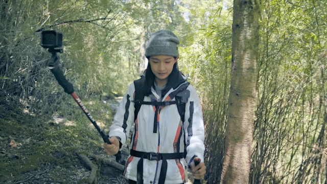さらにオプションのパーツを取り付けると、自撮り棒や三脚としても使用可能。撮影機材が減る分、登山荷物がコンパクトになるのも嬉しい。