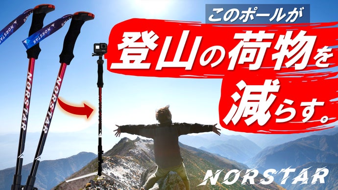 「NORSTARトレッキングポール」は、軽く頑丈なアルミ合金「A7075超々ジュラルミン」を採用。さらに三脚や自撮り棒の機能も備えるプロダクトだ。
