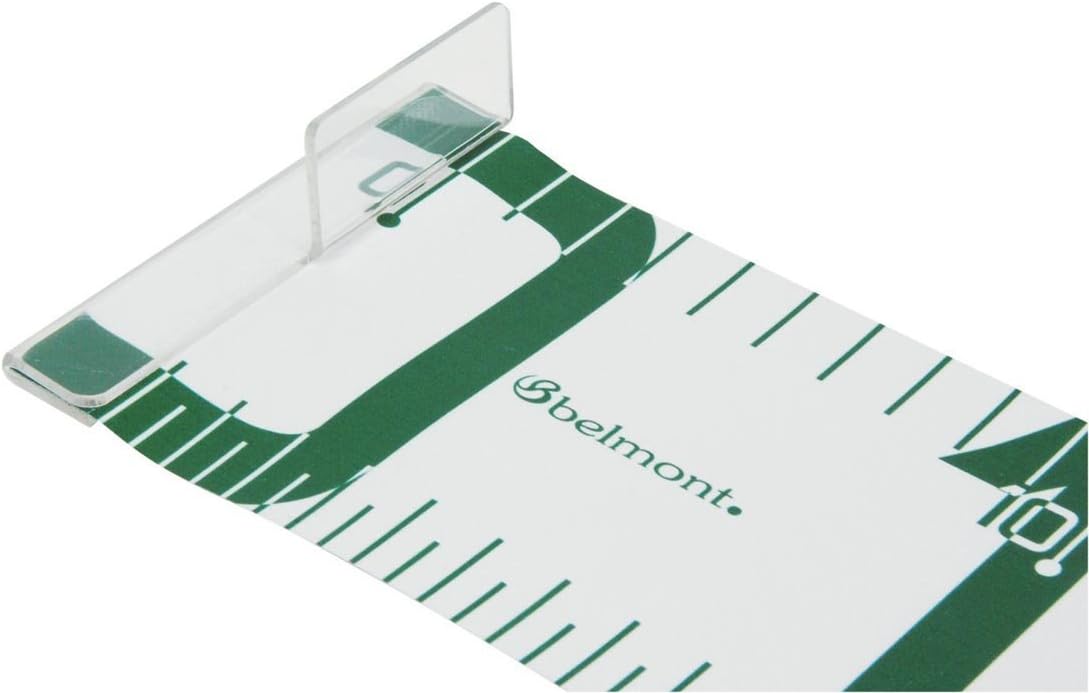 目盛だけが書かれた数字のないメジャーシート、ぱっと見で細かい数字は分かりにくいつくり。1cmごとに目盛が入っているほか、10cmごとに太い線が入っていて、計測は可能です。