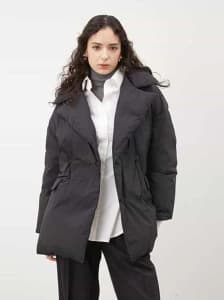 ややAラインになったシルエットがいい意味でダウンっぽくないので、オフィスはもちろん、学校行事や習い事の送迎と、汎用性の高さがカギに。顔周りが華やぐフードや、きれいめながら撥水加工が施されている点も魅力です。
