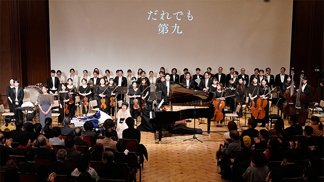 2023年12月21日にサントリーホール ブルーローズで開催された「だれでも第九」コンサート。障害を持つ3人のピアニストが、オーケストラ、合奏団と共に第九の演奏に挑戦した。