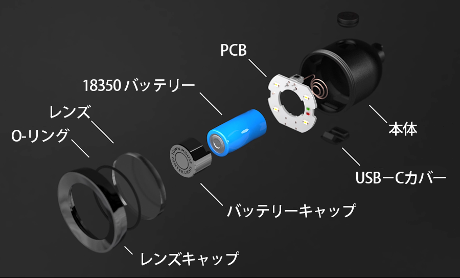 本体はアルミ製。3つの照明モードがあり、使用用途に合わせて切り替えできる。各モードの輝度と稼働時間は以下の通り。