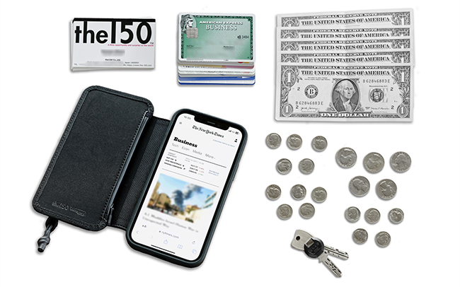 さらに、伸縮性の高いストレッチ素材によって、最大でカード10枚・硬貨20枚・紙幣5枚・名刺10枚・鍵を収納可能。収納量に応じてスリムにもパンパンにも使える