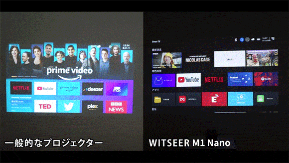 「WITSEER M1 Nano」は、狭い部屋でも大画面映像を楽しめる超短焦点プロジェクター。タッチモジュールを使用すると、机の上に投影する画面を直接タッチして操作が可能になる。