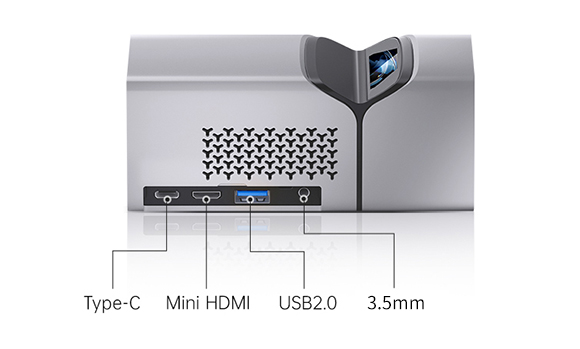 インターフェースは、USB Type-C、mini HDMI、USB2.0、3.5mm端子がある。内蔵バッテリーは2000mAh。充電はUSB Type-Cで、フル充電で最大約2時間駆動する。サイズは127.5×70×56.5mm。重さは485g。カラーはシルバーとブルーの2色。
