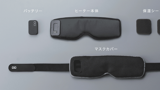 ヒーターユニットには、軽く丈夫なグラフェンヒーターを採用。マスクカバーをかぶせて使用する。給電はバッテリー式。わずらわしいケーブルが無いので、好きな体勢でリラックスタイムを満喫できる。
