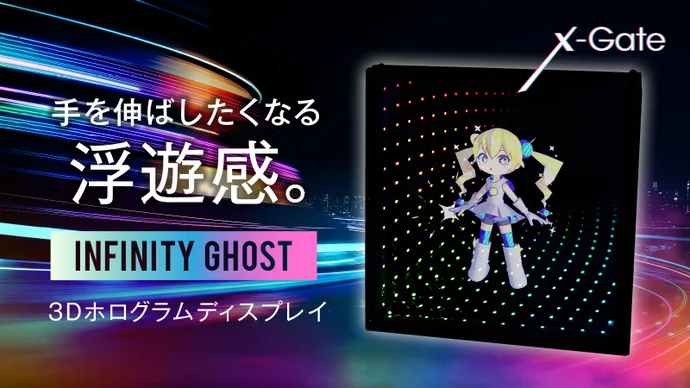 「INFINITY GHOST」は、裸眼で楽しめるホログラムディスプレイ。コンセントに差し込むだけで幻想的な3Dアートが楽しめる。
