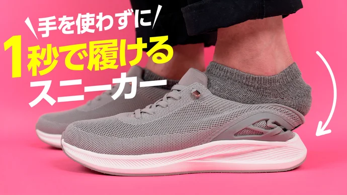 1秒でサクッと履けるスニーカー「ラクーン」かかとに特殊構造