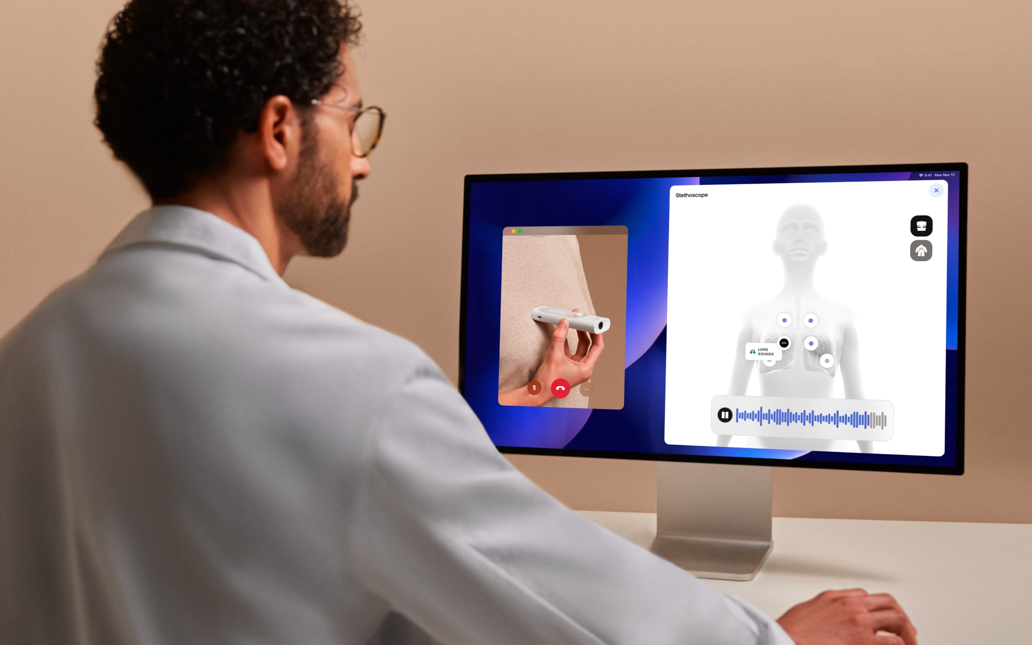 これにより、遠方の医師が検査機器で呼吸音や心拍などの確認ができるという。今まで問診が中心だったリモート診療がより具体的な診療になるとしている。