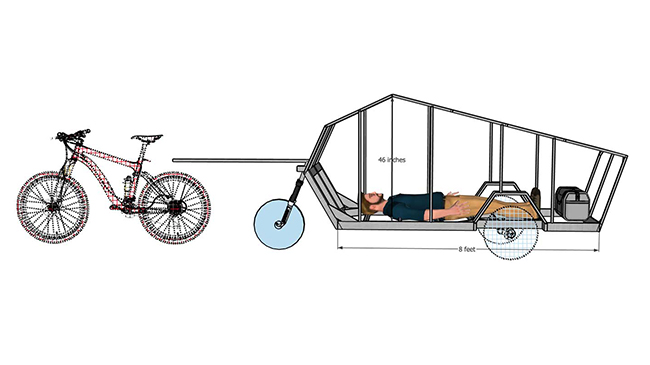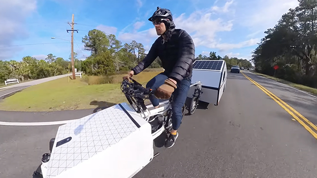 また、前輪にハブモーターを搭載し、牽引自転車の負担を軽減する。このハブモーターと、キャビン内の照明などの電化製品へは、付属の9.5kWバッテリーから電力が供給される。オプションでソーラーパネルも設置可能だ。