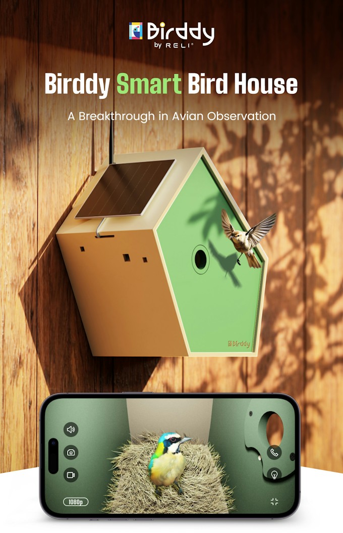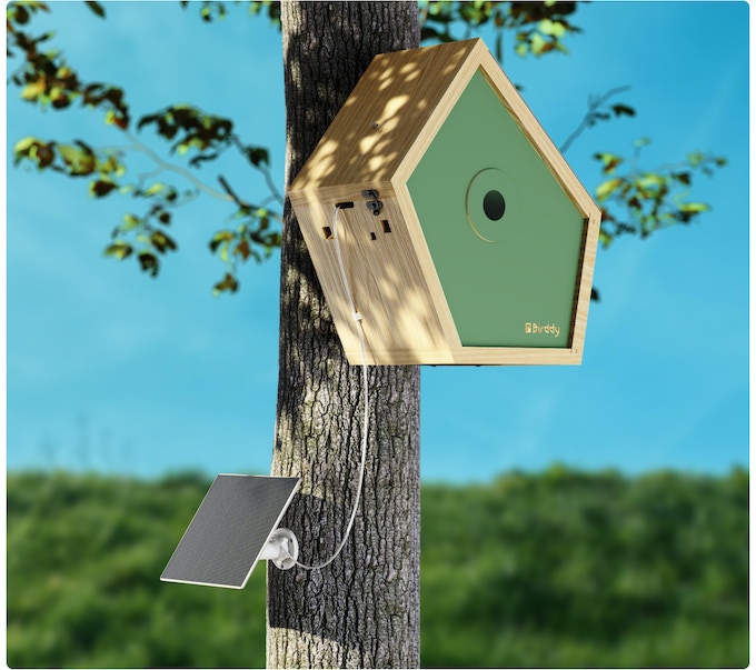 「Birddy Smart Bird House」は、ライブ中継やChatGPTとの連携機能をつかって鳥を観察する巣箱。