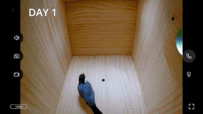 本体内に1080pで撮影できるカメラを内蔵。専用のアプリでスマホと連携して巣箱の様子をライブ中継できる。
