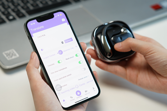 アプリを通じて、音声を翻訳してテキストに変換したり、写真からテキストを翻訳したりも可能。スマホとの接続はBluetooth。