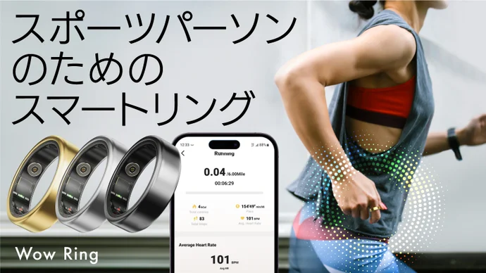 「Wow Ring」は、心拍数や消費カロリーなど、運動時のデータを記録するスポーツ用スマートリング。アプリからデータを確認できる。現在、Makuakeにてクラウドファンディング中。26,820円(税込)から応援購入できる。2024年5月末までの発送を予定している。