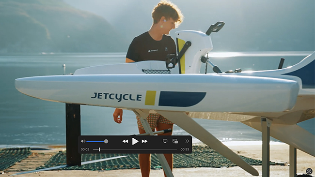 「E-JetCycle」は、フランスの企業が開発したリカンベント型の水中翼バイク。ペダルを漕いで水上を浮上走行できるモビリティだ。