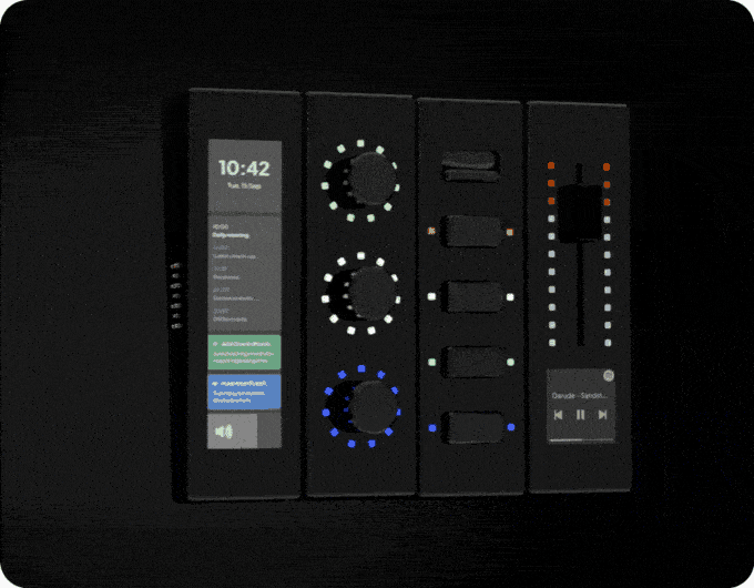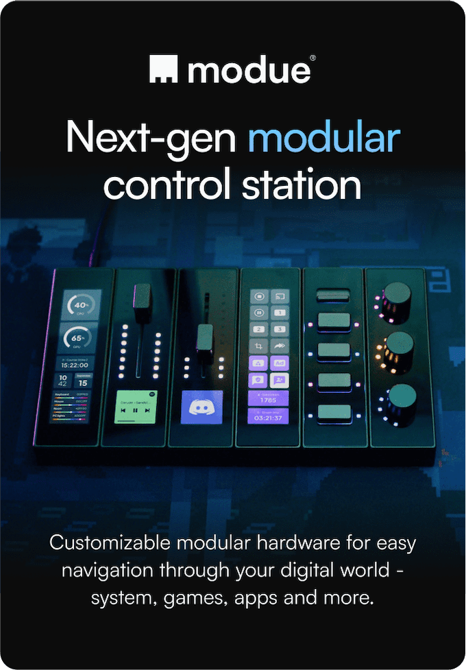 「modue」は、PC上の様々な機能をシームレスに操作できるコントロールステーション。ニーズに合わせてパーツを変えられるモジュール構造が特徴だ。