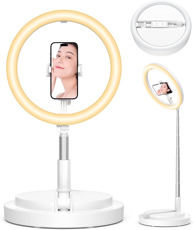 • LEDリングライト 折りたたみ一体式 【アップグレード版】 Sunnila 卓上地面両用 リングライト 撮影用 自撮り用 配信用ライト 俯瞰撮影対応 11.4インチ 3色モード 10段階調光 卓上スタンド USB給電式 テレワーク/web会議/Youtubeビデオ/TIKTOK/自撮り/生放送/化粧/Zoom/美顔ライト/カメラ撮影に適用 日本語取扱説明書付 ホワイト