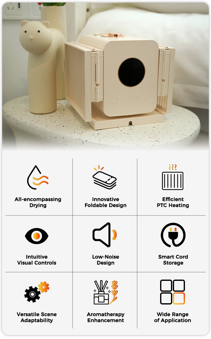 Auto Power Off / Large Capacity-850W / PTC Heating / Hidden Wiring / 3-Speed Adjustment / 0.6-5 Hour Timer