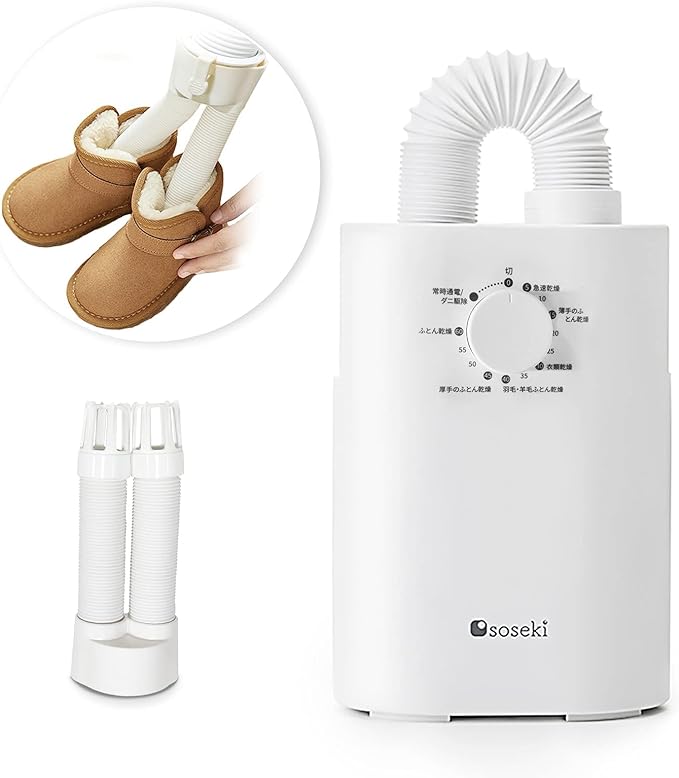 据え置きでも使用できる。専用ホース(別売)を取り付ければ、靴や布団の乾燥、ペットのドライヤーなどにも使えるという。
