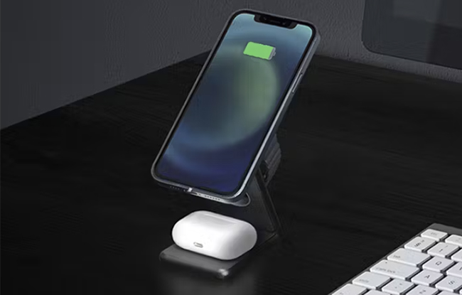 「MaGdget FoldCharge & Cable」は、iPhone、Apple Watch、AirPodsの3デバイスを同時に充電できるスタンド。折りたたみ式でコンパクトに持ち運べるのも特徴だ。