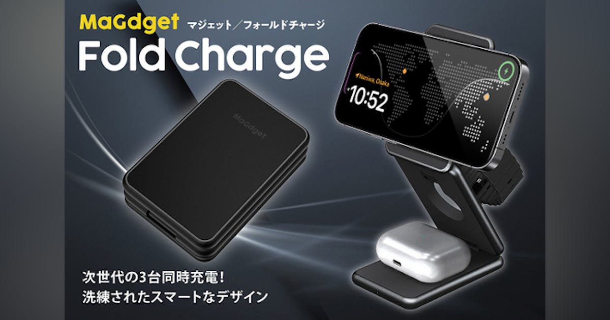 「MaGdget Fold Charge」はMagSafe対応のiPhoneとAppleWatchとAirPodsをケーブル1本で、3台同時に充電できるスタンド型の充電器です。あなたの生活をスマートにする次世代のチャージャーです!
