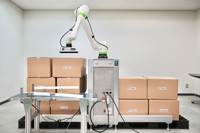 「Palletizy」は、ダンボールやコンテナといった荷物をアームで持ち上げ、パレットに整然と積み上げていくロボット。物流現場などでは「パレタイジング」と呼ばれる作業を担う。