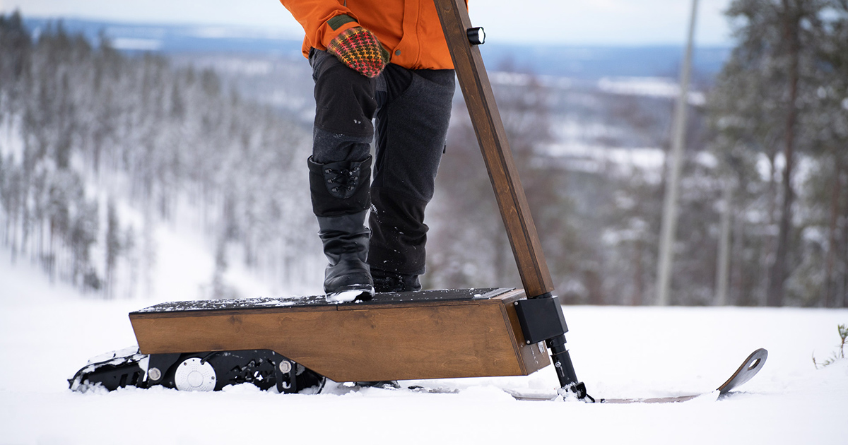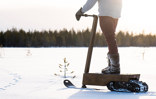 「eLyly」は、フィンランドの企業が開発した電動スノースクーター。フィンランドの伝統的なスキー板「Lyly」から着想を得た、木製のデザインが特徴だ。