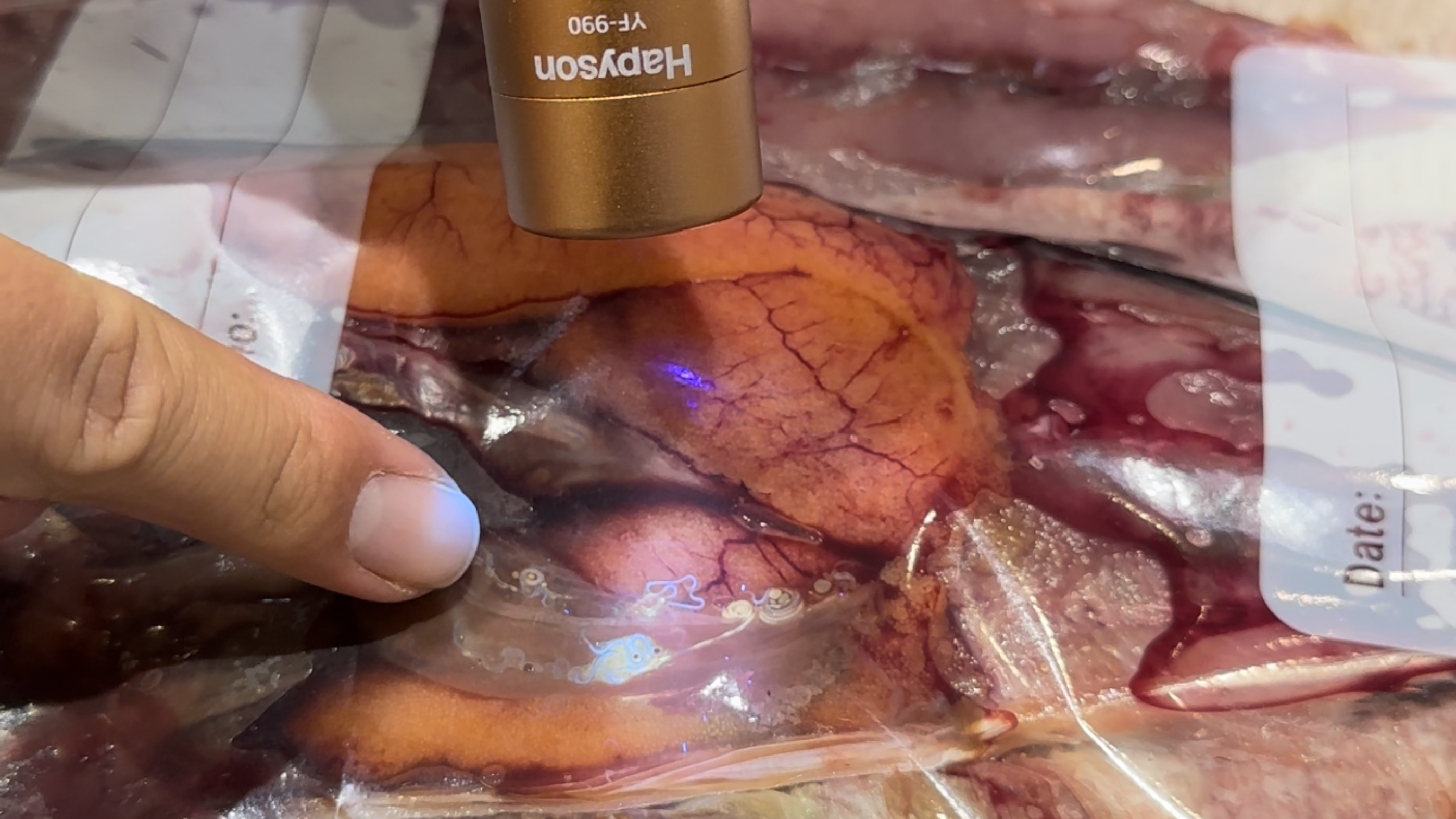 魚などをブラックライトで照らすことで、目視では見つけにくい、寄生虫を発見できる優れものです。