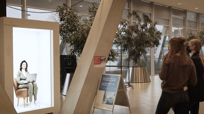 リアルな立体映像とほぼ遅延のない応答で、まるで目の前にいるかのようなコミュニケーションが得られるという。録画映像も表示でき、複数台つなげて連動表示させることも可能だ。
