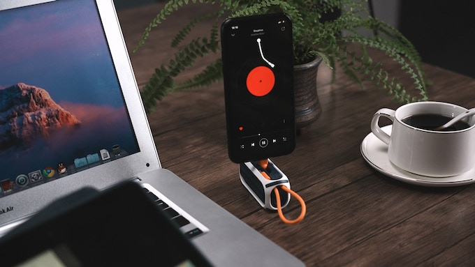 充電したままスタンドにもなる。重さは110gでストラップにして鞄に付けたり鍵などと一緒に持ち運べる。