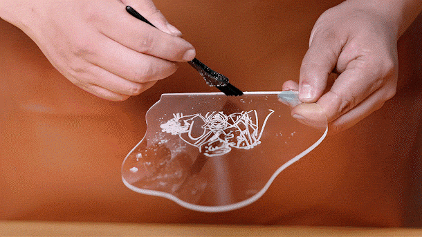別売りの線画モジュールを追加し、手持ちのペンを使った描画も可能。また、線画ヘッド+アクリル彫刻キッド購入で線画彫刻ペンを使ったアクリル彫刻も楽しめる。