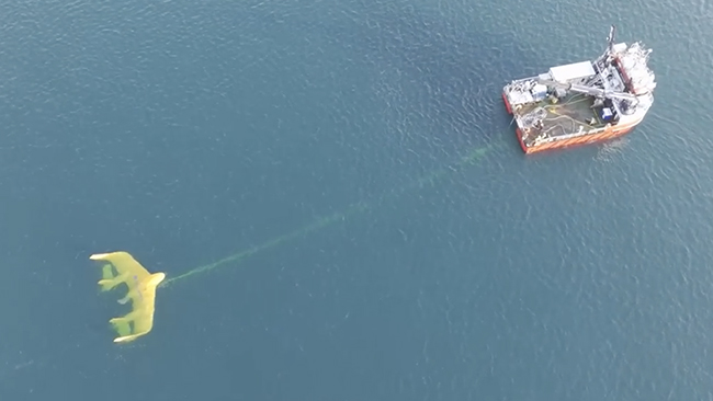 潮流と海流に煽られ、海中を凧のようにただようことで、タービンが回転し発電する仕組みだ。1機あたり1.2MWの電力を生成するという。