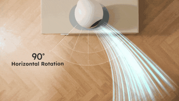 航空機のジェットエンジンのような仕組みを利用したモーターを使用し、本体背面から空気を集め、前方へ送風する仕組み。モーターは騒音の発生を最小限に抑える機能を持ち、1速度設定では約36dB未満の低いノイズで動作するそう。