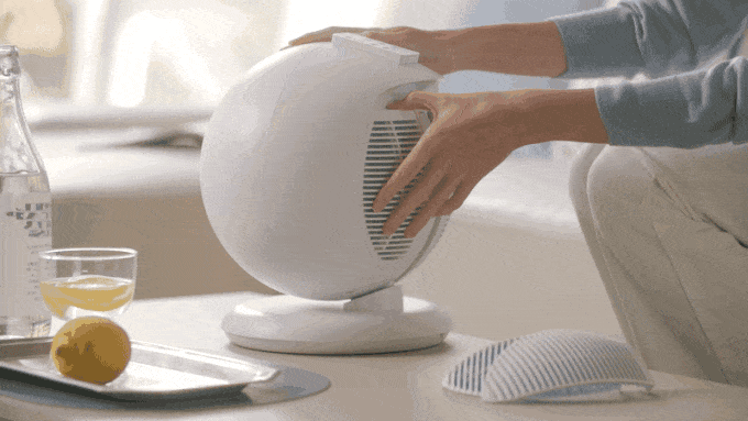 本体フィルターは通常用と空気清浄用で付け替え可能。空気清浄用フィルターは大気中の汚染物を回収し空間の大気を清潔に保つそう。
