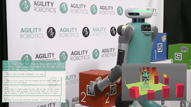 開発元のAgility Robotics社は、この「Digit」の行動生成AIとして新たに大規模言語モデルを採用。デモ実験の成果を動画で公開している。
