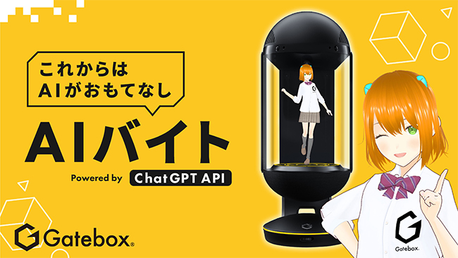 「AIバイト」は、ChatGPTと連携した接客サービス。ディスプレイ装置「Gatebox」にキャラクターを召喚し接客させるという設定だ。