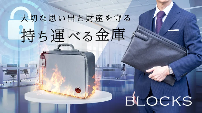 「ブロックス」は重さ685g、特に貴重品の保管・持ち運びを想定し開発された手持ちバッグ。グラスファイバー素材とシリコンコーティングの二重構造で燃えにくいのが特徴だ。