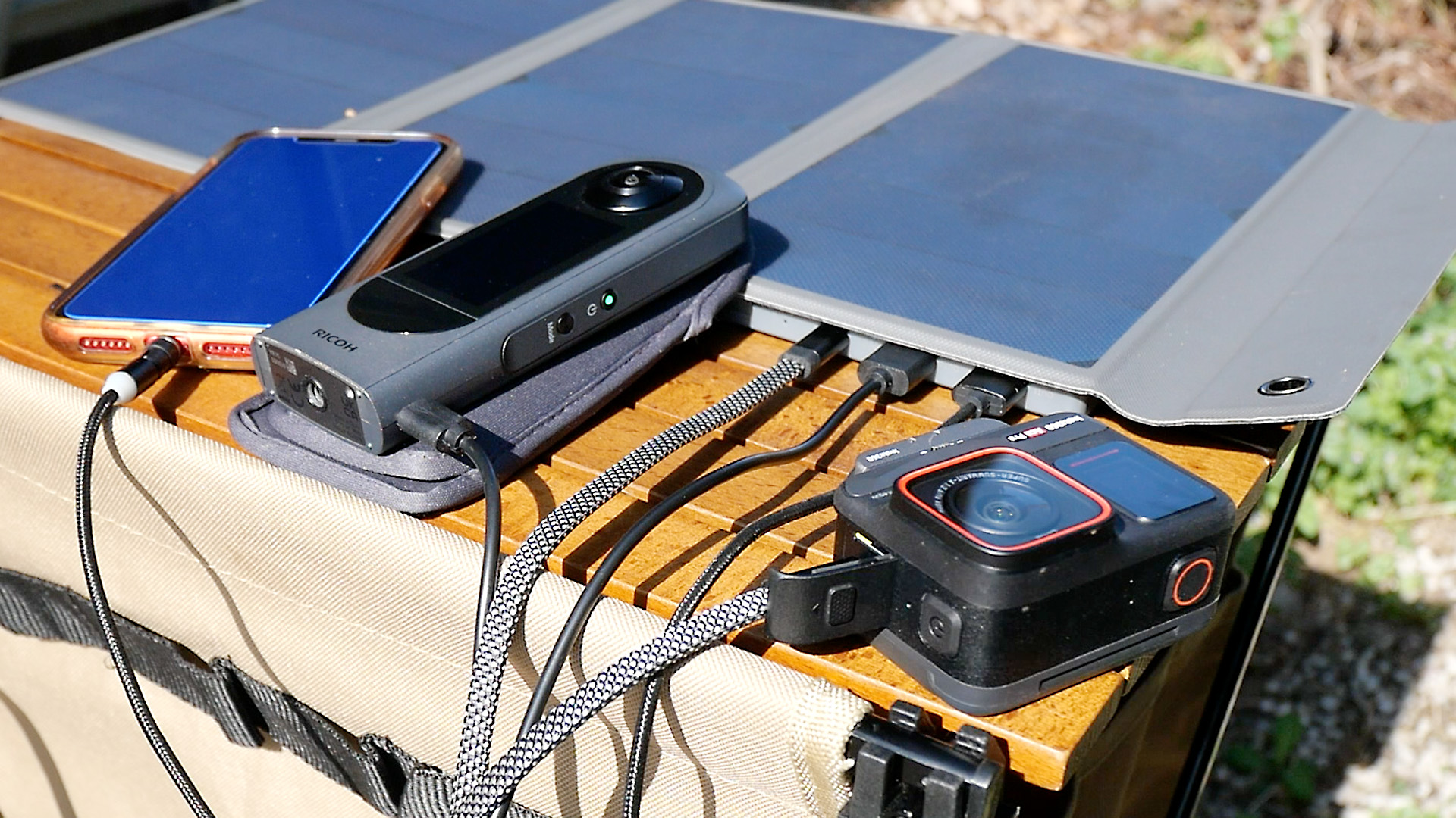 スマホやカメラ、LEDライトなどを太陽光でどこでも充電できるので、キャンプやロケ、災害時などにも役に立ってくれるでしょう。