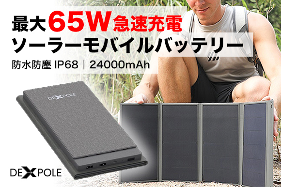 そこで今回試したのが、ソーラーパネル付きのUSB PD出力対応のモバイルバッテリー「DEXPOLE」です。レビュー用にお借りしました。
