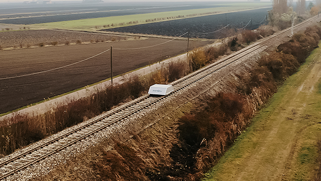 実験動画では、既存の鉄道のレール上を、プロトタイプ車両が磁気浮上で走行する様子が確認できる。距離2km、時速70kmのテスト走行に成功したという。