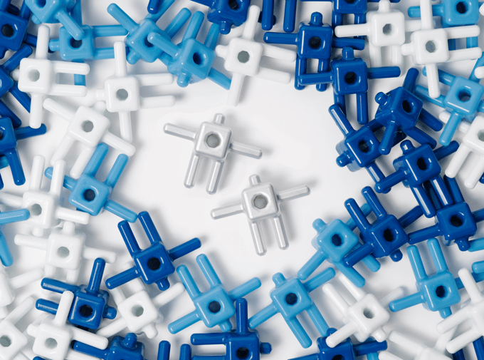 「Souper Connect」の腕や足は八角形の形状をしており、さまざまな角度で積み上げることができる。工夫次第でオリジナルの作品ができるので、想像力も鍛えられそうだ。