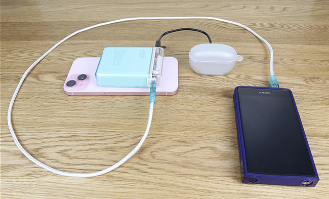 「re:colors」は、USB-A・USB-C・iPhoneのMagsafe充電に対応し、3デバイスまで同時に充電可能。