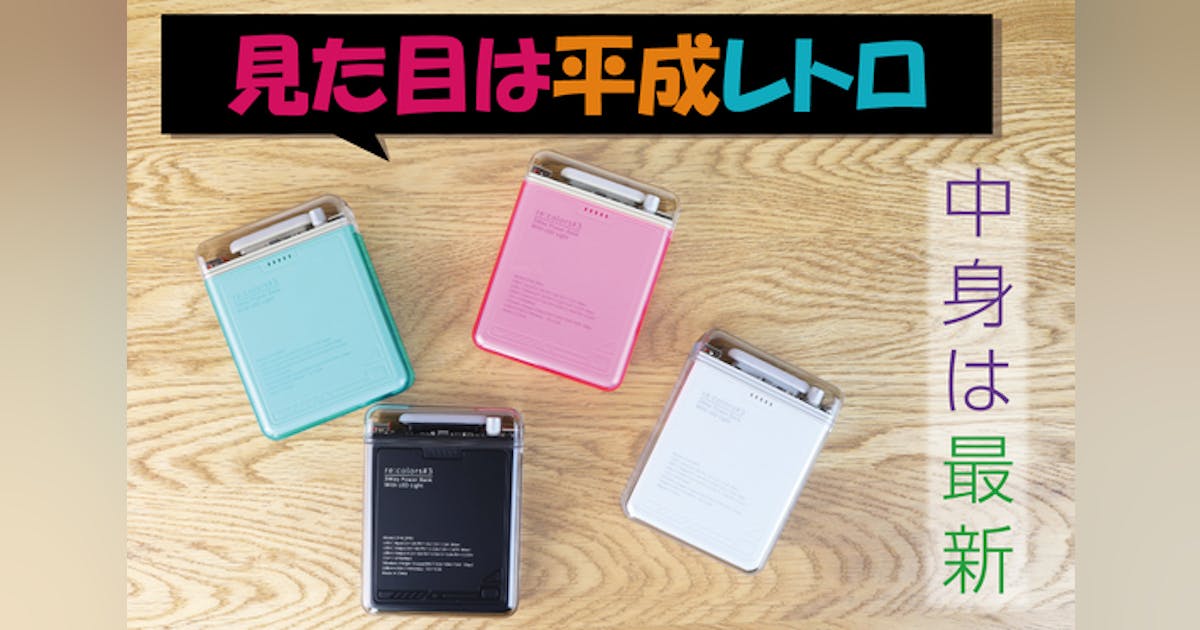 「re:colors」は縦9.00 × 横6.25cm、重さ約207g、容量10,000mAhのモバイルバッテリー。初代iMacをオマージュしたというスケルトンデザインが特徴だ。