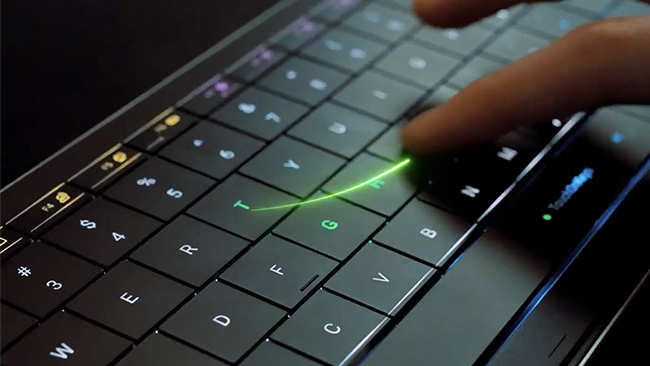 キー表面をなぞってスクロール・ドラッグ・スワイプ等の操作が可能だ。また、音量調整等に便利なタッチスライダーエリアも搭載している。