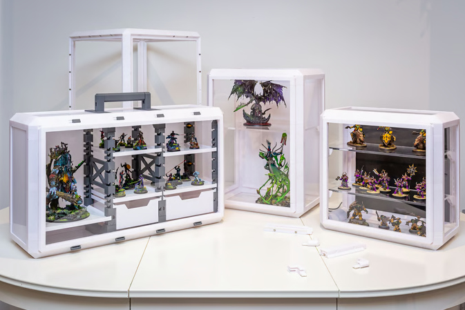 「ULTIMO」はケースを自作できるシステム。パーツを3Dプリンターで作成し、組み合わせることで、自分好みのコレクションケースを制作できる。