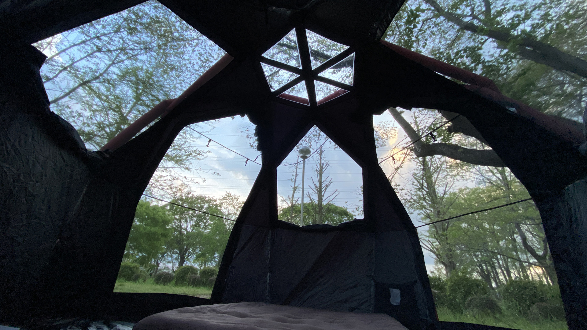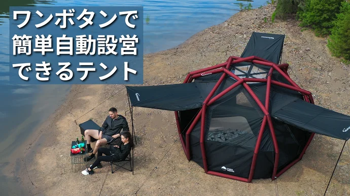 そこで今回試したのが、ひとりでも簡単に設営できるドーム型エアーテント「AeroTent Sphere」です。レビュー用にお借りしました。