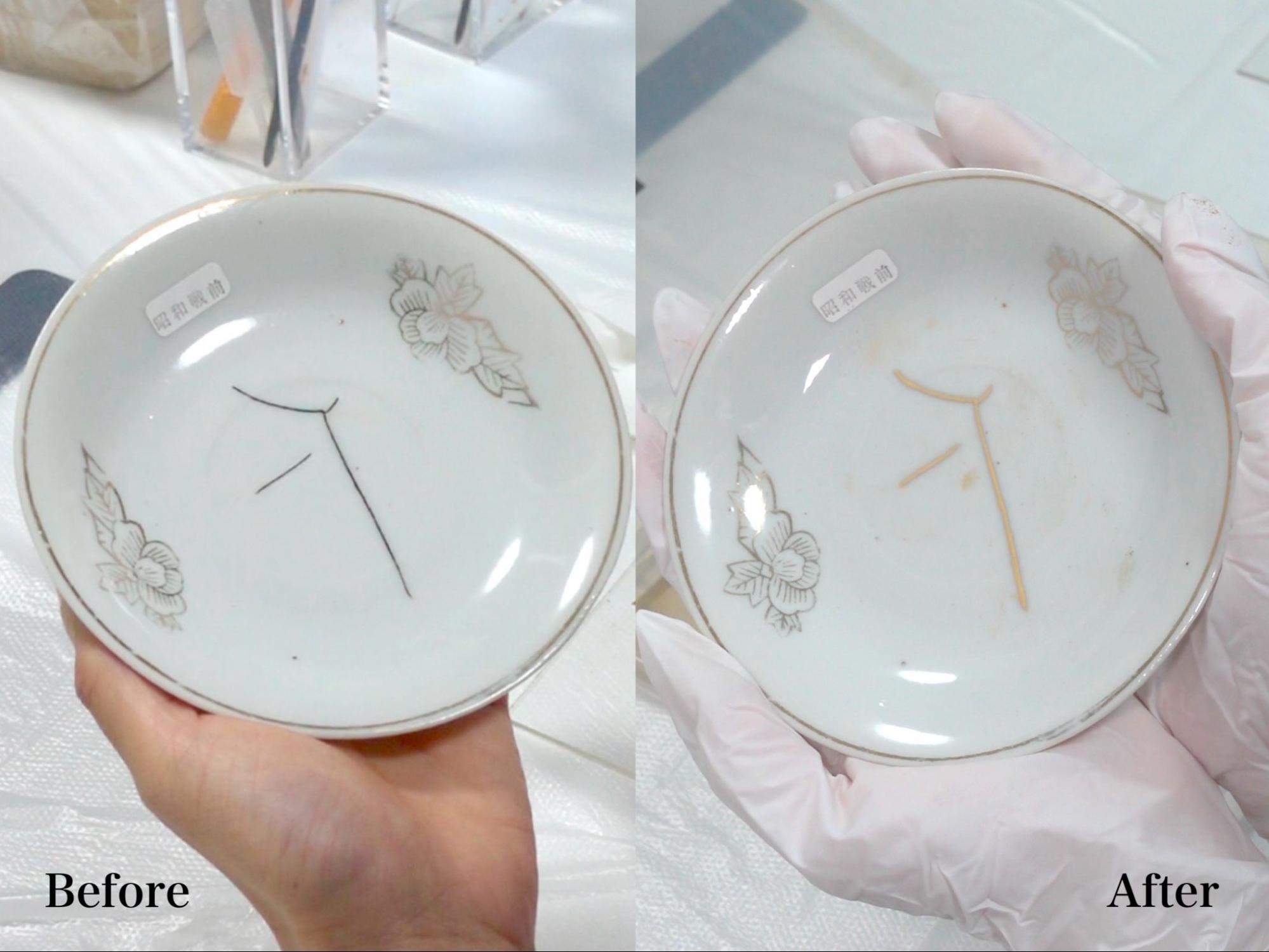 今回はヒビの入った食器の修繕を体験しましたが、割れた食器も金継ぎで修繕できます。お気に入りの食器が壊れてしまっても、伝統技術で味のある美しい姿になって使い続けられるのはうれしいですよね。
