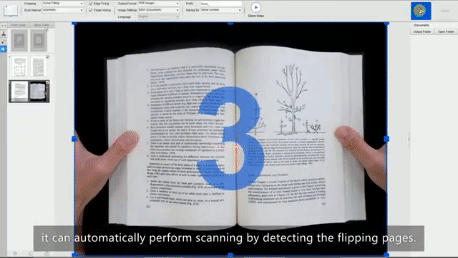 自動トリミング機能や傾き補正機能、入ってしまった指や影などの自動削除が可能。手動でスキャンするためのハンドボタンとフットペダルが付属。最大1600万画素。