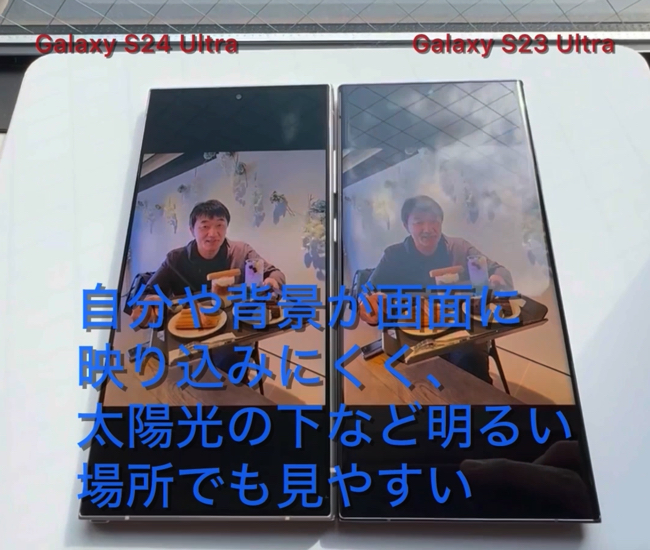 画面サイズは6.8インチ、解像度1440×3120ドットの有機ELを搭載。最大輝度は2600nit、反射を抑えたガラスを採用しており、ほかのどのスマホよりも太陽光下で画面がしっかりと見えるのも特徴だ。